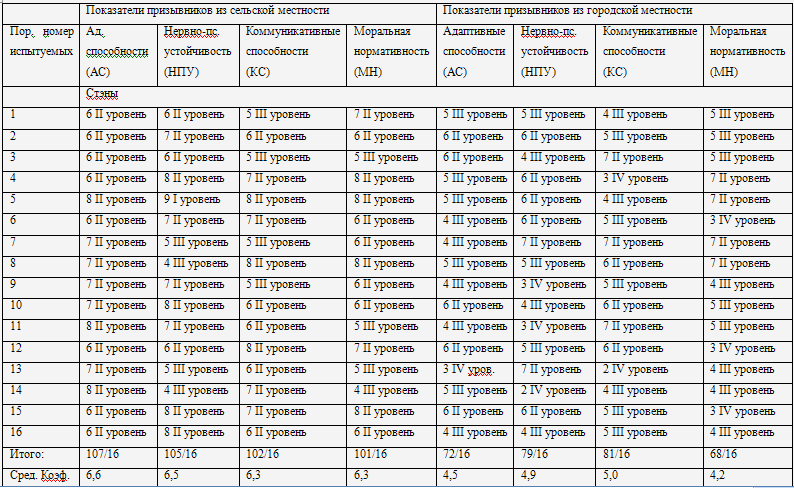 Цель нашего исследования - изучение адаптивности призывников из городской