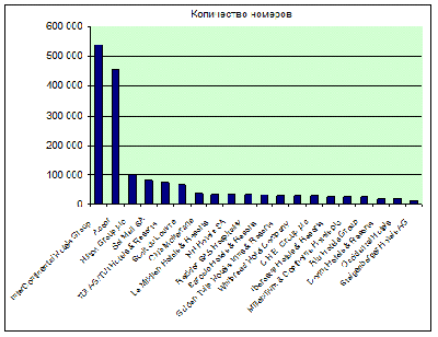 превосходят ближайших конкурентов в 4-5 раз. Средняя величина номеров в