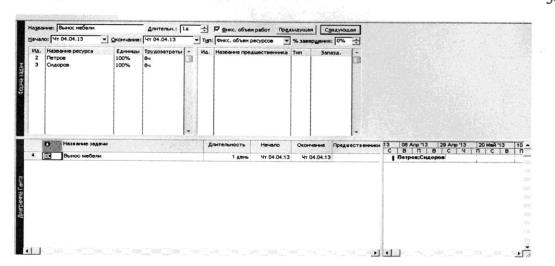 сочетания два одиночных: диаграмму Г анта и диаграмму использования задач