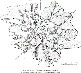 образует в русском городе XVII в. жесткого решетчатого рисунка, характерного