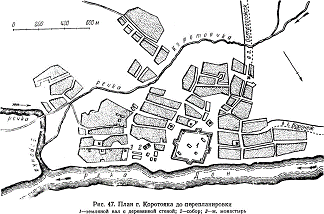 прямоугольно-прямолинейной системе. С севера посад был окаймлен рвом.
