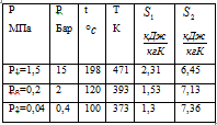 и энтропии сухого насыщенного пара S1",