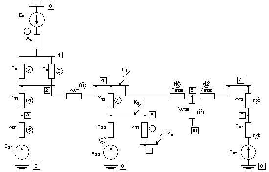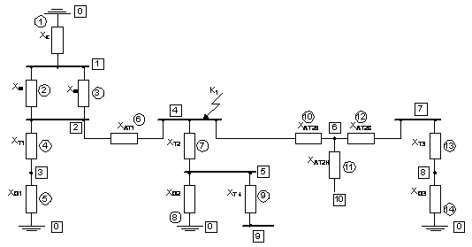 Для схемы замещения ЭЭС (рисунок 1.1) рассчитываются
