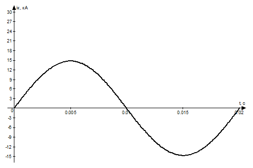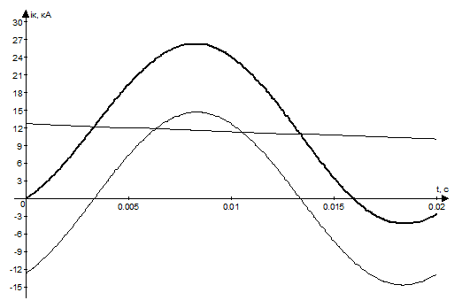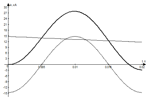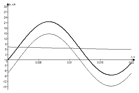 Для времени t = 0,2 с значение периодической составляющей тока