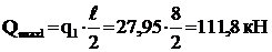 qtr = 0,5×q×B = 0,5×0,84×61 = 25,62кН/см.