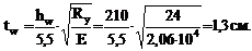 статическую нагрузку при касательных напряжениях t £ 0,9Rs (кроме опорных сечений). Однако в составных балках из-за большой