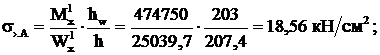 Изгибающий момент в месте приварки траверсы к ветви колонны