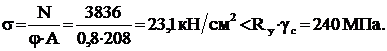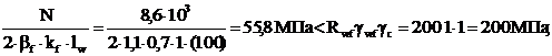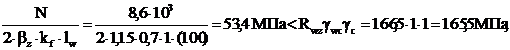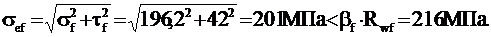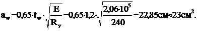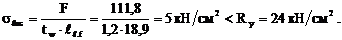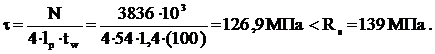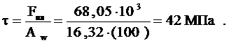 215МПа, Rwz =166,5МПа; bf = 0,8; bz = 1,05. Расчет выполняем по металлу шва, так как bf×∙Rwf =0,8×215=172 МПа < bz×Rwz=1,05×166,5 = 175 МПа.