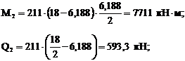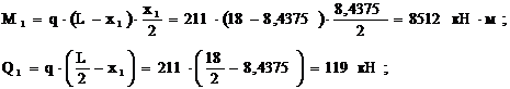 максимальных изгибающих моментов на отдельных расчетных участках: