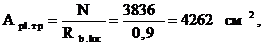 опорной плиты в плане определяем исходя из условия прочности бетона фундамента