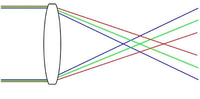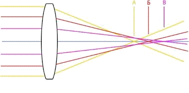 дисперсией света проходящего через объектив, т.е. разложением луча света на