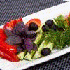 с теплой брынзой свежие огурцы, помидоры, перец болгарский, салат