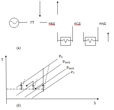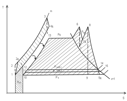 свидетельствует уменьшение термического КПД цикла с 34,95 % до 31,8 %.