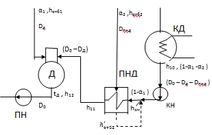 насос; ПНД - подогреватель низкого давления; Д - деаэратор; ПН - питательный