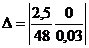 Δ1 = 2,5 > 0; Δ2 = 2,5*0,03 - 48*0 = 0,075 > 0.