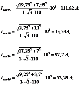 Определим по формулам (1) и (2) мощности на участках 3-5, 3-6, 3-4.