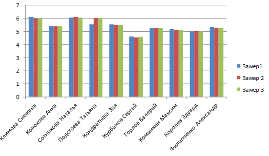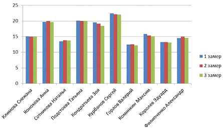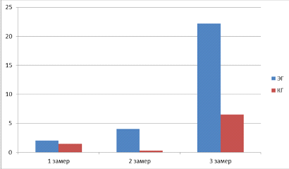Разность показателей между 1-ым и 3- им контрольными замерами