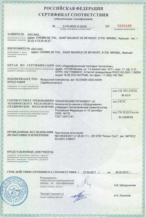 СЕРТИФИКАТ СООТВЕТСТВИЯ ТРЕБОВАНИЯМ ТЕХНИЧЕСКИХ