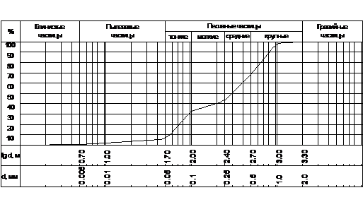 интегральную кривую гранулометрического состава, определить тип грунта по