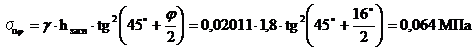 пассивное давление σп в любой точке стенки: