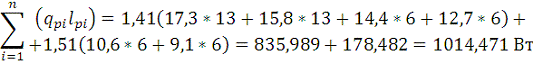 Тепловую мощность отопительных приборов, размещенных в каждом