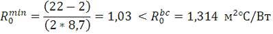 По формуле (3) СНиП 23-02 определим минимально допустимое