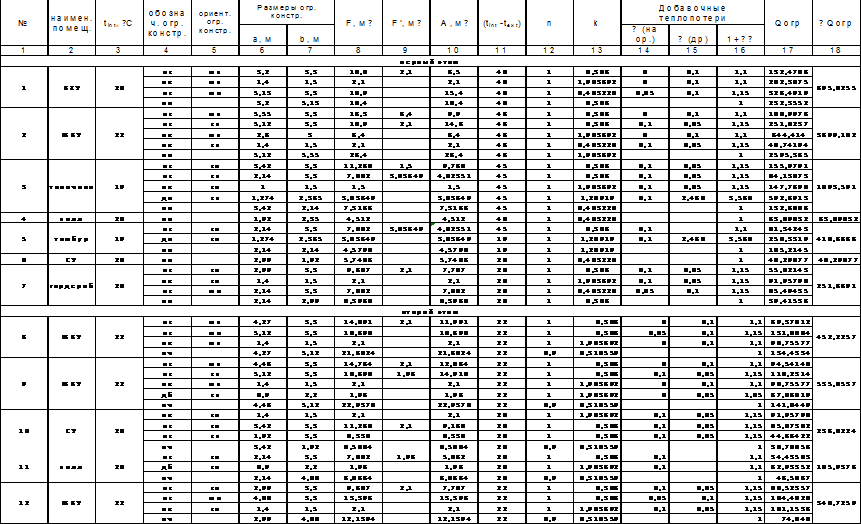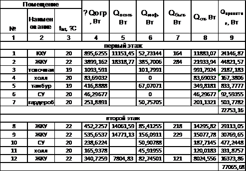 Расчет теплопотерь на нагревание воздуха, поступающего
