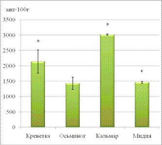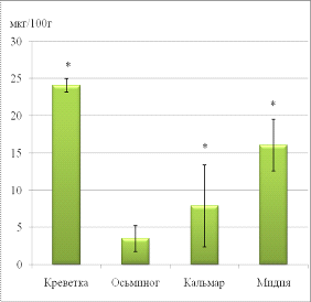количественного содержания витаминов А и Е в мясе морепродуктов и морской рыбе.