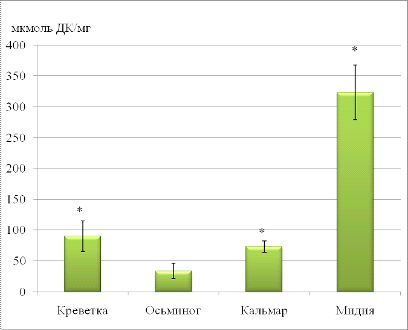 перекисного окисления липидов наблюдается в мясе мидии, а среди морской рыбы в