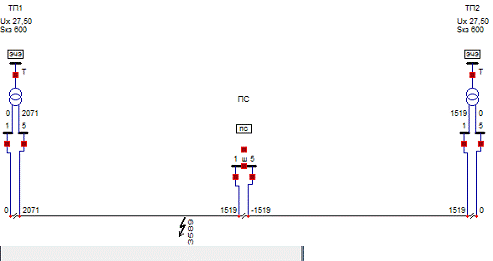 видны наиболее опасные точки короткого замыкания, расположенные посередине