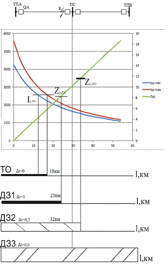 соответствующие протяжённости зон действия защит (рисунок 3.4). Длина зоны