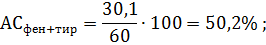 аминокислотный скор i-аминокислоты, % (i=1-8); ACmin -
