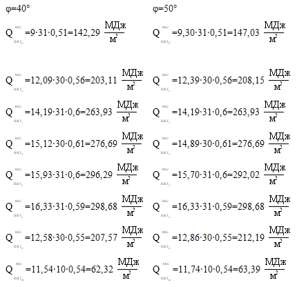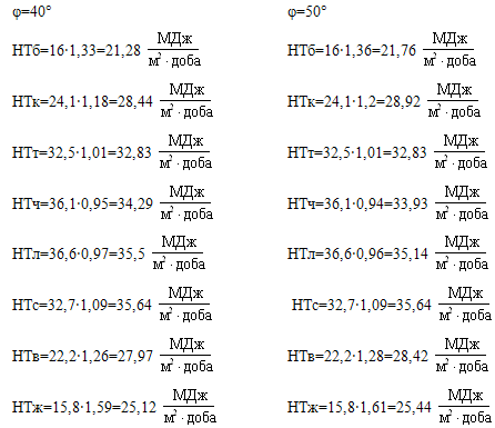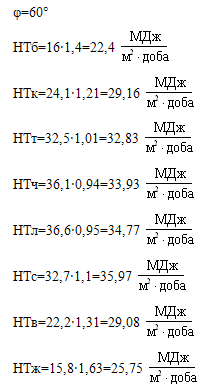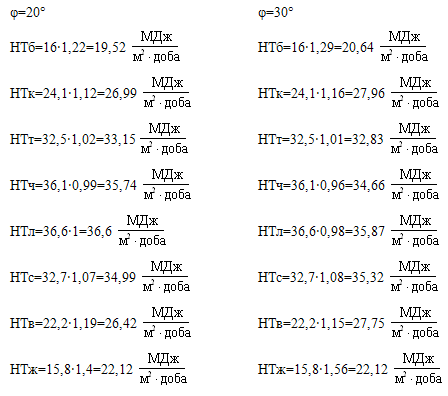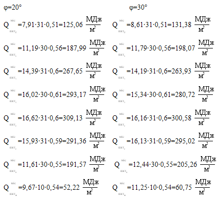 геліоустановки для різних значень кутів нахилу , а пізніше вибрали оптимальний