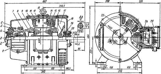крышка подшипника; 20 - шариковый подшипник; 21 - передняя крышка подшипника;
