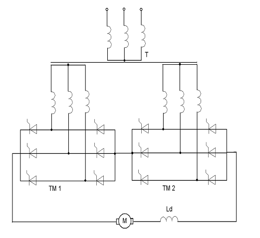 вентильних груп, у нашому випадку: перехресна схема з живленням кожної з груп