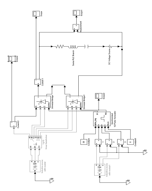 тиристорного перетворювача проводиться в пакеті Mathlab Simulink.