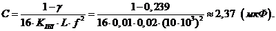 Ємність конденсатора на вході інвертора визначають за виразом: