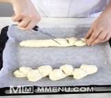 часть. С оставшегося теста делаем колбаску и делим на шестнадцать кусочков.