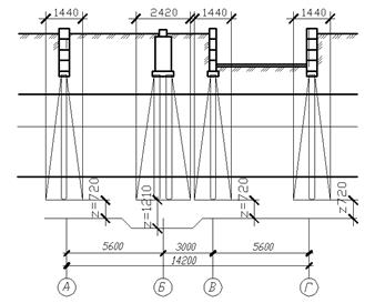 фундамента по оси Б: