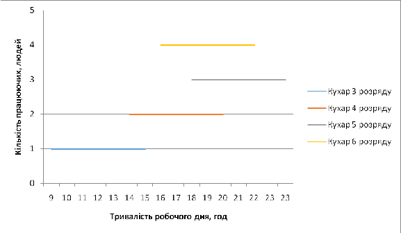 цеху нами був використаний ступінчастий графік виходу на роботу: кожен кухар
