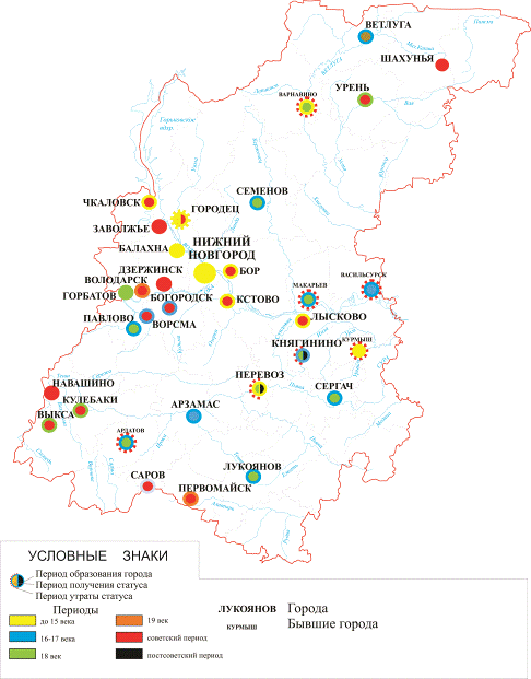 образовано 10 городов, некоторые из них (Пьянский Перевоз (Перевоз), Княгинин