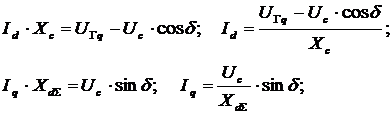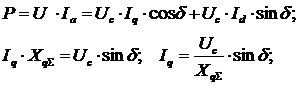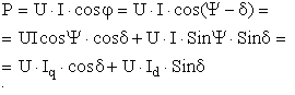 поперечное составляющее напряжения генератора Uq=U× cosd.