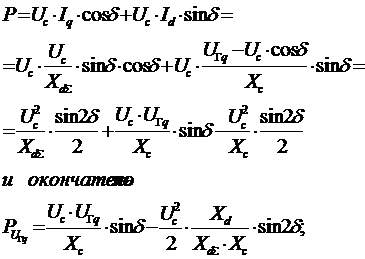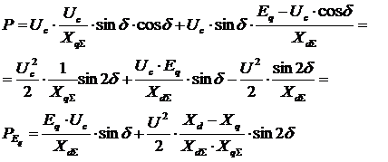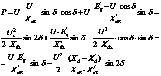производной передаваемой мощности по углу между э.д.с генераторов и напряжением