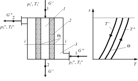 потоков; h¢, h² - энтальпия потоков; α¢, α² -