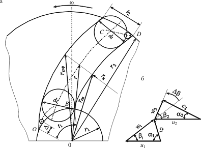 глубина и ширина канала; β1л = 32°; i = 6°; OB = 0,0201; OC = 0,343 м. Характер