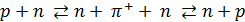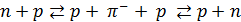 Нейтрон и протон обмениваются π--мезонами