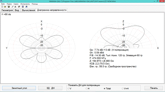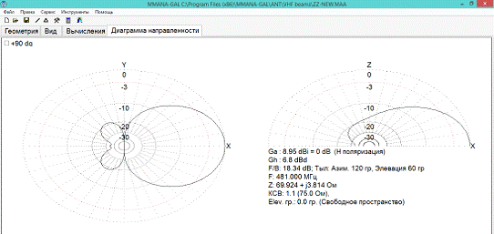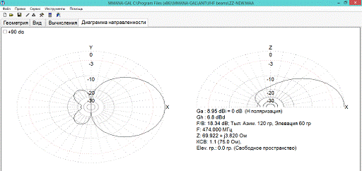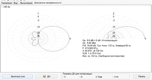 требуемую диаграмму направленности и достаточно высокий КНД, равный 8,95 дБи.