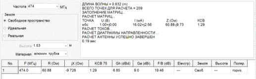 4,184 Ом, что говорит о согласованности антенны со стандартным питающим