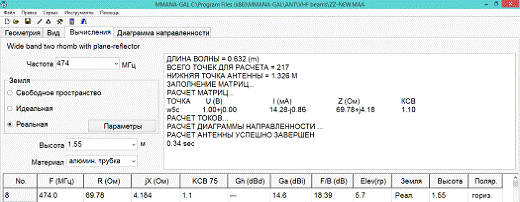 Анализ антенны типа 'широкополосная зигзагообразная'