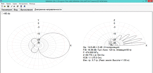 хорошие показатели усиления, так КНД с учетом влияния Земли составляет 14,6